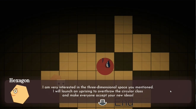 Cubik needs to use his understanding of the three-dimensional world to conceal himself from his pursuers——Circle class and to enlighten two-dimensional citizens——the figures.